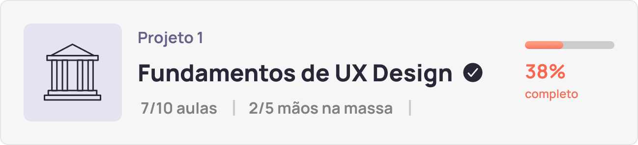 O primeiro projeto serve para preparar o terreno. Aqui você verá tópicos como história, grandes nomes da área, princípios de design e tipos de produto, ao mesmo tempo em aprende o básico da organização de um projeto de design. Ao final desse módulo, você estará familiarizado com o universo do UX design e terá criado um cronograma para o projeto mais importante desse momento: a sua transição de carreira.